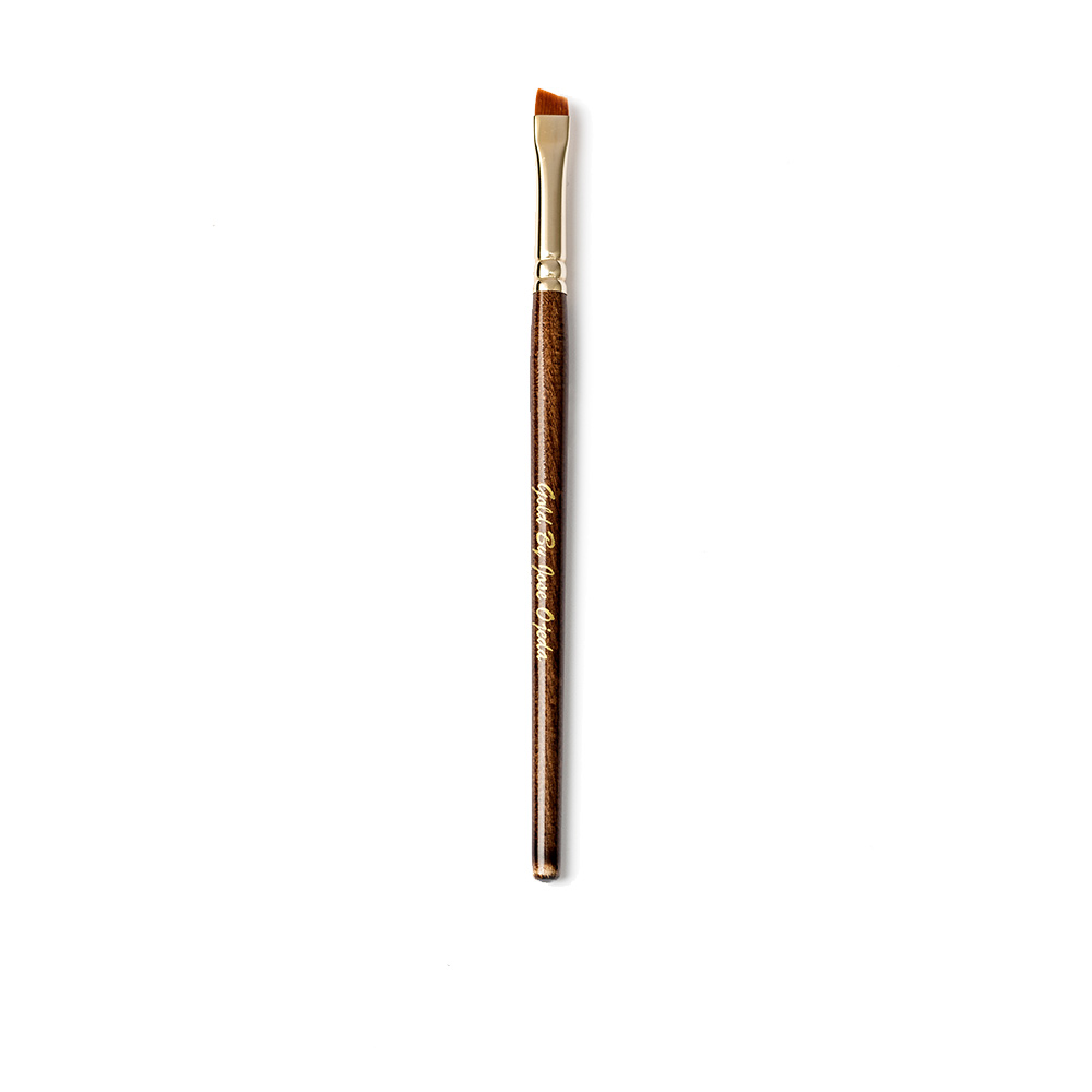 Pincel biselado de chocolate de GOLD. Este pincel, con su diseño en ángulo, es ideal para realizar delineados en los ojos y dar forma con precisión a las cejas. Está fabricado con pelo sintético de alta calidad, color chocolate.